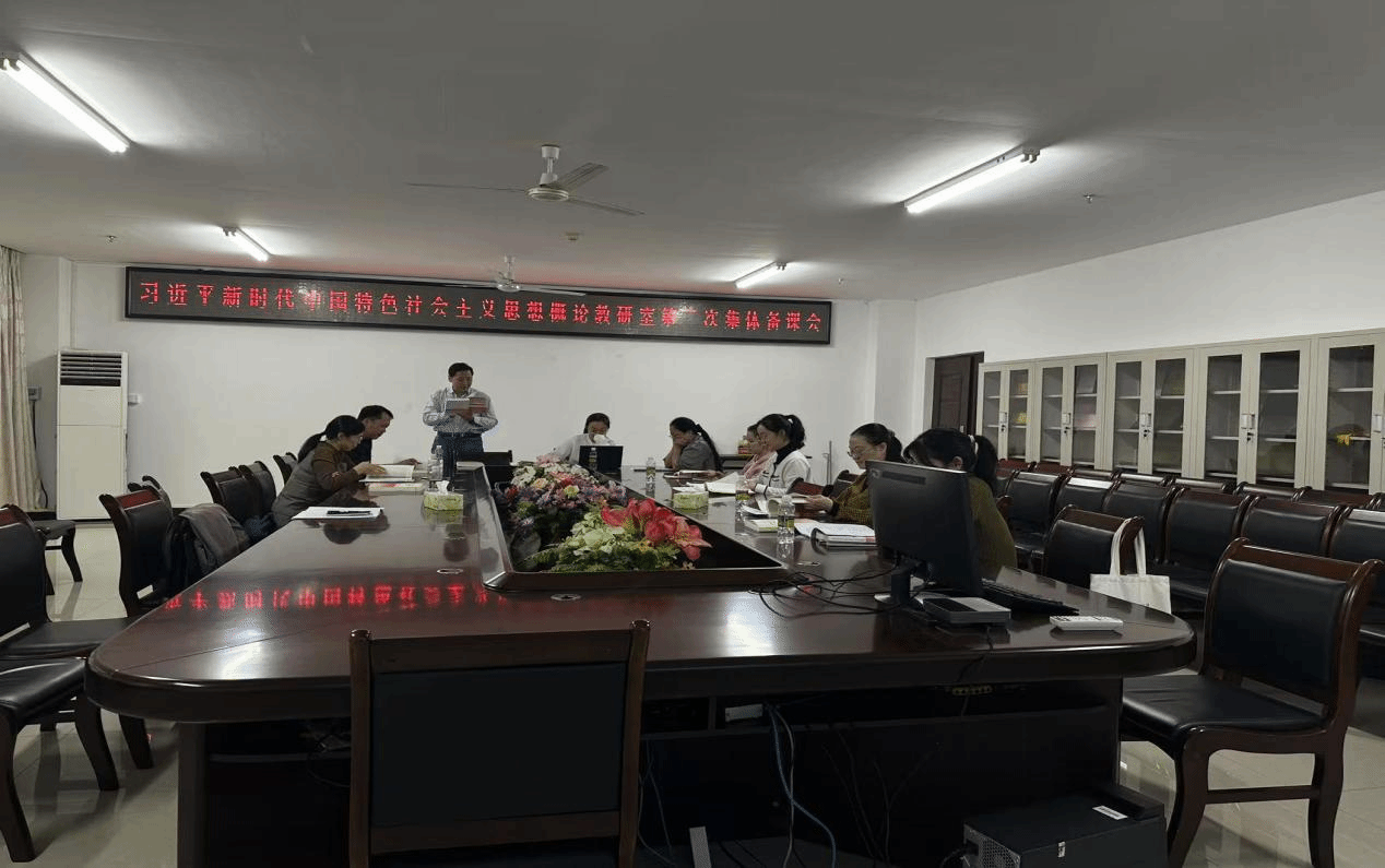 2025年3月18日下午,“习近平新时代中国特色社会主义思想概论”教研室在社科楼A311会议室开展了集体备课会。会议由教研室主任刘涵老师主持,涂刚鹏老师主讲,其他老师共同研讨。