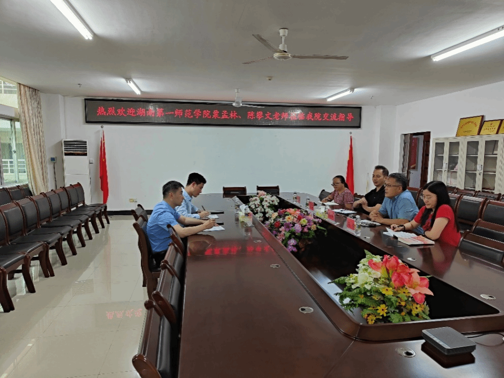 4月11日上午,湖南第一师范学院马克思主义学院国家社科基金重点项目(项目名称为:调查研究在习近平新时代中国特色社会主义思想实践课中的运用)课题组粟孟林、陈攀文一行来欧冠官网调研交流。欧冠官方网站入口蔡文举副院长、王一闳副院长、习近平新时代中国特色社会主义思想概论教研室主任刘涵、骨干教师方英群参加交流。