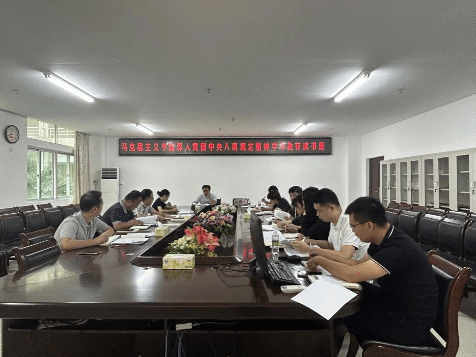 4月25日,欧冠官方网站入口在社科楼311会议室举办深入贯彻中央八项规定精神学习教育读书班。学院党委书记王大群,副院长王善、秦晓华、王一闳以及全体党支部书记共同参与此次重要会议。