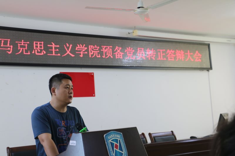 院党委副书记张井富在答辩大会上讲话。他代表学院党委对举行此次答辩会议表示了肯定和期待,他表示,本次答辩会是按照学校党委组织部关于党员发展工作的有关要求进行的初次尝试,是把好发展党员的入口、提高党员质量的重要抓手,党支部要以此次会议为契机,强化标准化、规范化党支部建设,加强学习型、服务型党支部建设,增强服务意识,提升本领,充分发挥党支部的战斗堡垒作用。他对学生党员提出了两点希望:一是要发挥好党员的先锋模范作用,增强党员意识,在学习和工作中勇当先锋、做好表率;二是要积极为学院发展做贡献,在实践中紧跟党组织步伐,为集体、为社会做出应有贡献。