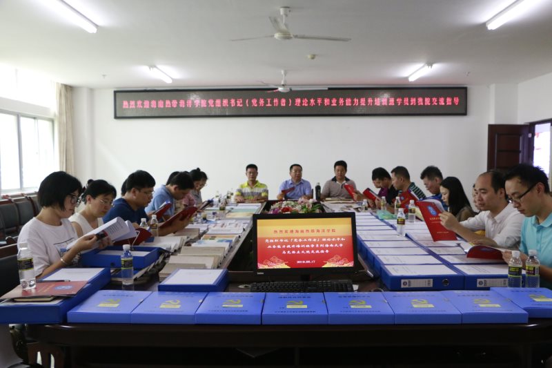 6月17日下午,海南热带海洋学院(党务工作者)理论水平与业务能力提升培训班学员到欧冠官网交流学习,并在社科楼A311会议室召开经验交流会。学院党委书记段捷频,党委副书记张井富,副处级辅导员张君成出席交流会。