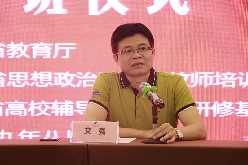 文强在开班仪式上讲话。他代表省教育厅向这次培训班的顺利举办表示祝贺,对参加研修和培训的老师表示热烈欢迎,对承办此次活动的欧冠官方网站入口、欧冠官方网站入口表示感谢。他强调,全体学员要提高思想认识,增强做好思政课教师和辅导员工作的责任感和紧迫感;要加强业务学习,以坚定的信仰、扎实的学识、高尚的品行影响学生,不断提高工作能力和水平;要加强培训纪律,增强培训工作的实际效果,做好学习成果转化。他希望,全体参会人员要珍惜机会,遵守纪律,认真向专家学者学习,切实提高自身的理论水平和实际能力,为新形势下我省高等教育的发展而努力,为海南“一区一港”建设贡献自身力量。