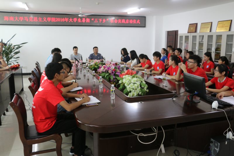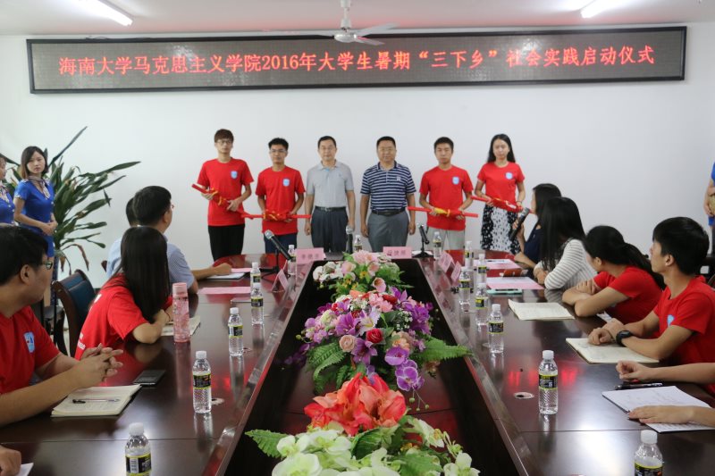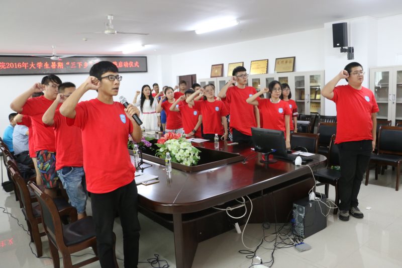 7月6日下午,欧冠官方网站入口2016年大学生志愿者暑期“三下乡”社会实践活动启动仪式在学院会议室隆重举行。学院党委书记段捷频、院长李德芳出席,暑期社会实践团体指导教师代表张君成、邵鹏鸣、周郭军以及全体志愿者参加仪式。仪式由团委书记周郭军主持。 李德芳在仪式上作动员讲话。他表示,学院历来十分重视大学生志愿者暑期社会实践活动,这是研究生科学研究与本科生社会实践相结合、思想教育理论与实践锻炼相结合原则的生动体现。他对各个社会实践团队提出了三点要求:一要统一思想,提高认识,强化担当,积极投身于暑期社会实践当中;二要培养集体观念,增强团队意识,明确自己的职责和任务,遵守纪律,加强配合,形成强有力的凝聚力;三要高度重视实践过程中的安全问题,切实提高自身安全防范意识和技能,防患于未然。最后,他希望志愿者们在借鉴以往丰硕的实践成果和经验上,珍惜机会,加强锻炼,力争拿出高水平的实践调研成果。 段捷频在仪式上对各实践团队提出五点希望:一、坚定理想信念,在实践中不断践行社会主义核心价值观;二、努力发挥思想政治教育专业的优势,将其融入到最广阔的地方和农村中,各尽其才,更好地服务地方发展;三、且行且思,且悟且进,你我同行,快乐实践,要用阳光的态度来面对困难;四,严守纪律,严明规矩,要充分展现马院学子的精神面貌和道德修养;五、树立安全意识,落实安全责任,加强管理监督作用,确保学生安全。 启动仪式上,周郭军简单介绍了欧冠官网四支社会实践团队,分别是“海南公民道德素质发展研究实践调查团”、“海南省红色文化数据收集、整理实践调研团”、“农村基层党建实践调研团”、“海南高校网络评论实践调研团”等,实践范围涉及海口、东方、儋州、临高等十二个市县。 李德芳、段捷频分别向四支社会实践团队授院旗,并与参会的教师及志愿者合影留念。 暑期社会实践指导教师代表张君成、学生代表田菁分别在仪式上发言,学生代表杨振兴带领全体志愿者进行宣誓。