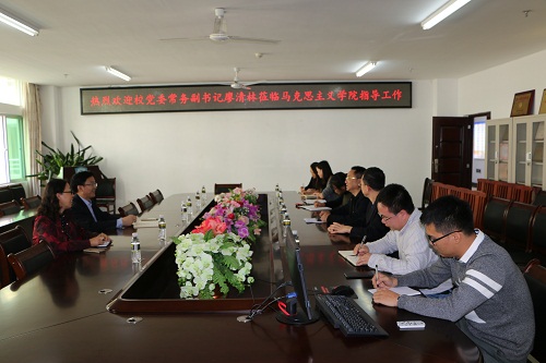 2月19日下午,校党委常务副书记廖清林到欧冠官网调研指导工作,党委办公室副主任徐凤莲陪同。学院党委书记段捷频、院长李德芳、副院长杨娜和学院全体行政人员参加调研座谈会。