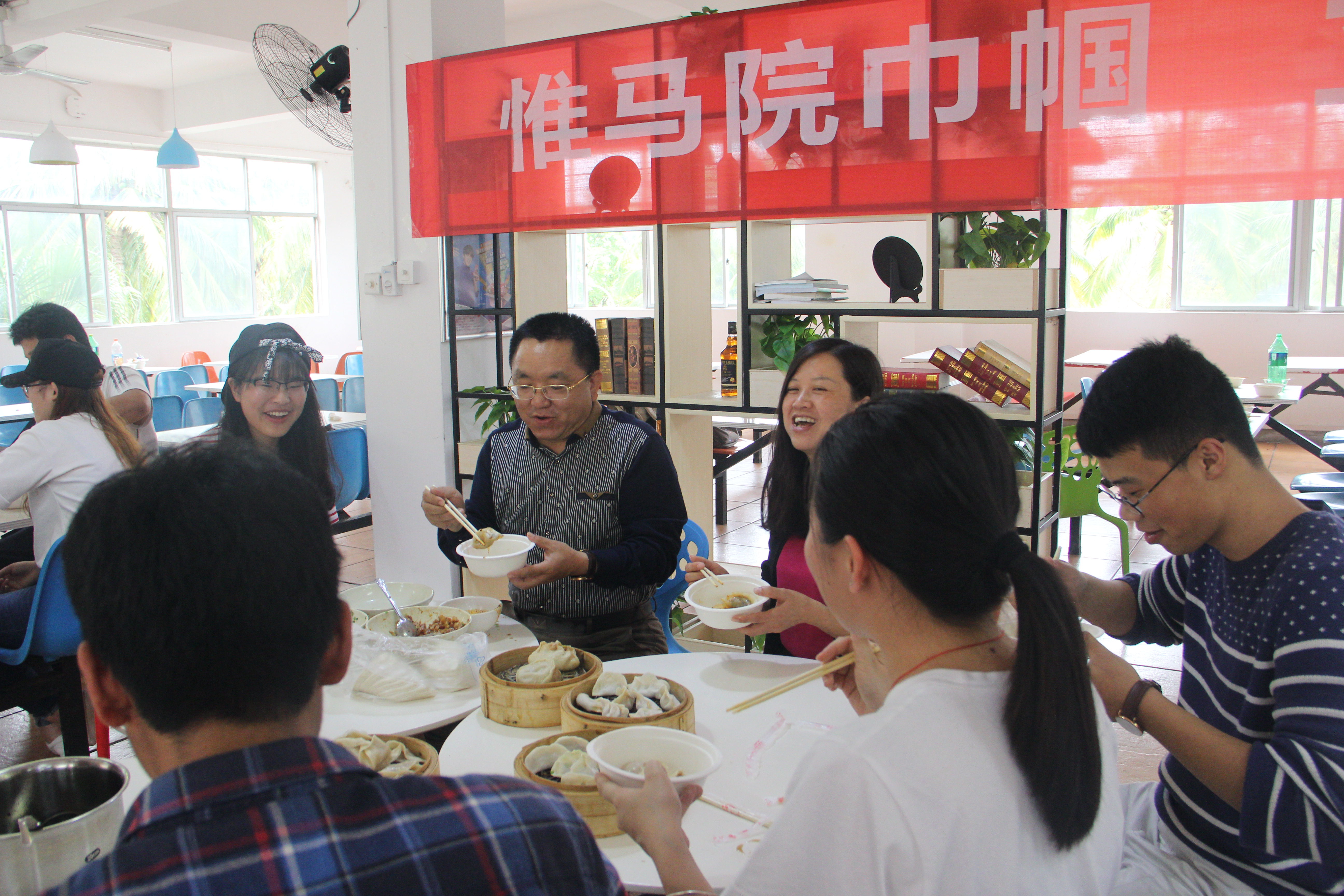 3月7日下午,欧冠官网2016级在城西校区多媒体室、2015级及2014级在海甸校区第七食堂二楼开展以“惟马院巾帼,立哲思之巅!”为主题的女生节“DIY饺子送女生”活动,学院党委书记段捷频,团委书记周郭军等老师亲临海甸校区现场,兼职辅导员李德友亲临城西校区,与同学们展开亲切互动。