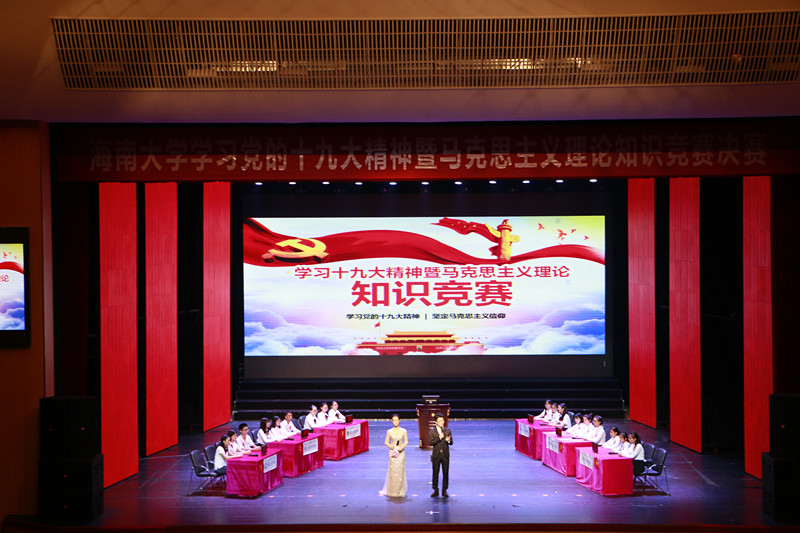 为深入学习贯彻党的十九大精神,11月28日下午,由欧冠官方网站入口主办、欧冠官方网站入口党委宣传部、欧冠官方网站入口、教务处、校团委、学工处联合承办的学习十九大精神暨马克思主义理论知识竞赛决赛在思源学堂大礼堂隆重举行。海南省委宣传部理论处副处长魏如松、海南省社科联部长郭乐新,欧冠官方网站入口校党委常委、副校长梁谋,校党委常委、统战部部长陈明宝,学工部部长陈卫东、校团委书记林洪冰、教务处处长张云阁、宣传部副部长许美丹、教务处副处长吴朝阳、欧冠官方网站入口院长李辽宁出席活动。