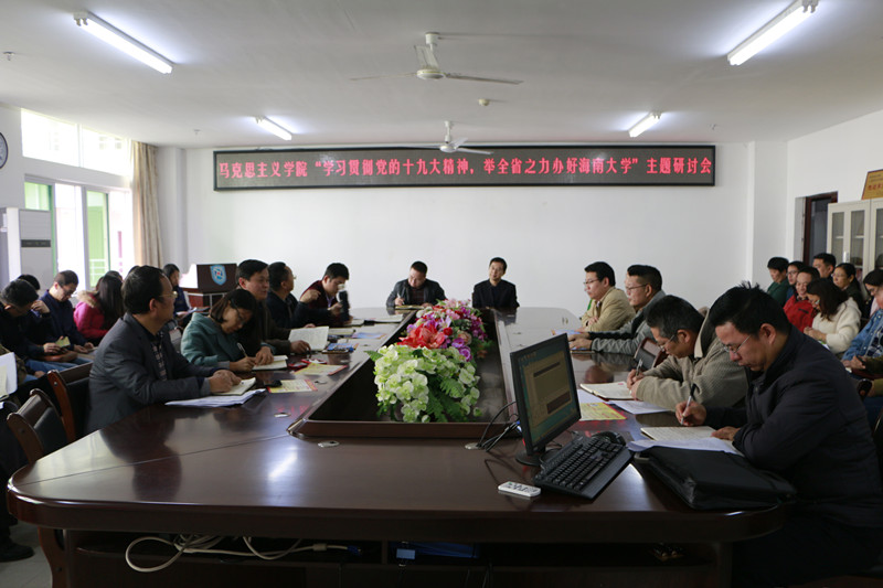 为深入学习贯彻党的十九大精神和认真贯彻落实海南省委、欧冠官方网站入口党委关于“举全省之力办好欧冠官方网站入口”的指示精神,12月19日下午,欧冠官网在会议室召开“学习贯彻党的十九大精神,举全省之力办好欧冠官方网站入口”主题研讨会。学院领导班子,各系(部)负责人及全体教职工参加研讨会。