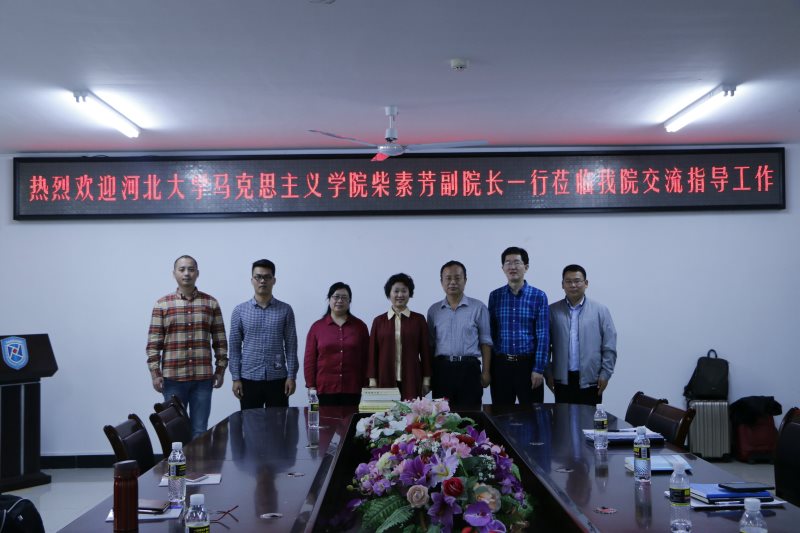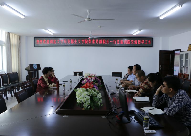 3月23日下午,河北大学欧冠官方网站入口副院长、博士生导师柴素芳教授一行2人到我校欧冠官方网站入口考察交流,欧冠官方网站入口副院长王善、马克思主义中国化教研部主任贺尧夫、形势与政策教研部主任温小平等5位教师参加了交流活动,活动由王善主持。