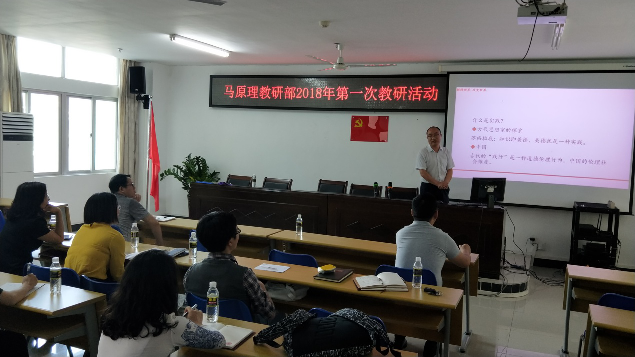 马克思主义基本原理概论教研部于4月3日下午3:00至5:00,在学院三楼开展了一次教研活动。此次教研活动共分两个阶段:第一阶段在A315教室开展原理教研部的教学科研研讨活动;第二阶段在A311会议室,与基础教研部联合开展新修订教材的情况说明活动。