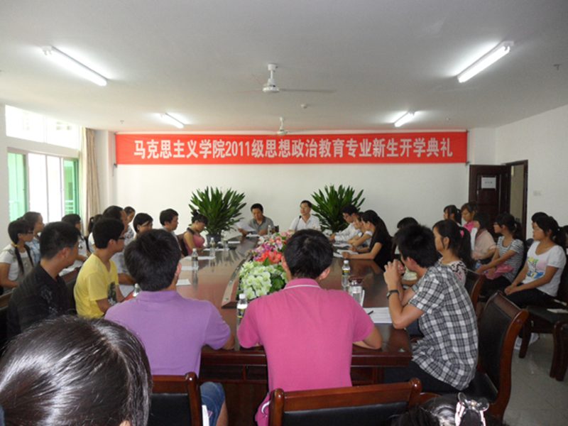 万里晴空,椰风徐徐。2011年9月5日上午10点整,欧冠官方网站入口2011级本科生开学典礼在学院会议室隆重召开。典礼由副院长张云阁教授主持。院长李德芳教授、新生班主任陈思莲副教授,思想政治教育专业全体教师,以及学工办、团委办公室负责人周郭军老师等出席了此次典礼。