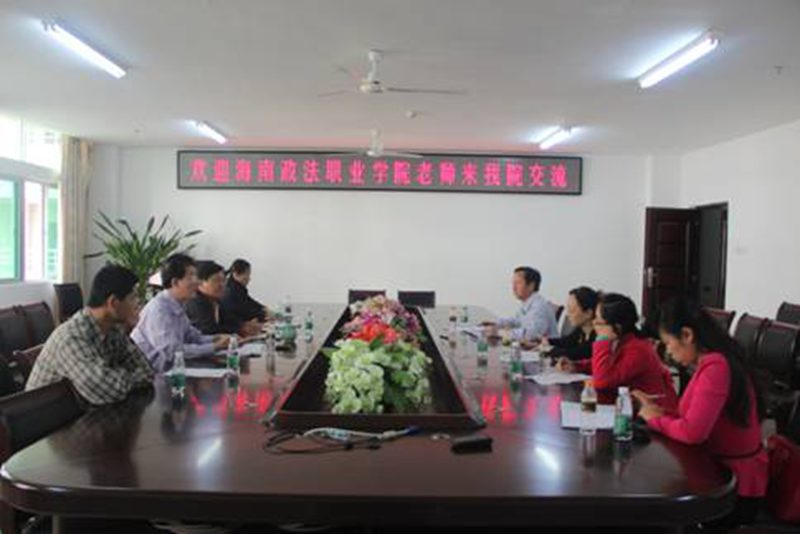 11月29海南政法职业学院社科部陈焕随副主任等一行多人,就当前思想政治理论课教学方法改革与欧冠官网教师进行交流。院党委书记梁谋主持座谈交流会。