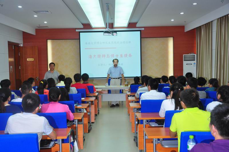 9月18日下午,校党委书记刘康德教授走上研究生思想政治理论课讲坛,为我校2014级全体博士研究生作题为“海大精神与博士生使命”的讲座。《中国马克思主义与当代》课程负责人张云阁教授主持讲座。校党委办公室主任梁谋,欧冠官方网站入口党委书记段捷频、副院长杨娜旁听了讲座。 刘康德教授采用校史馆现场解说、主题演讲和师生互动相结合的授课形式,从欧冠官方网站入口的历史沿革讲起,向同学们讲解原两校师生在推进学校发展过程中传承下来的主要精神;结合中国传统文化和新欧冠官方网站入口的建设发展,向同学们诠释了“海纳百川、大道致远”的校训和“自强敬业、厚德弘毅”的校风,进而向同学们全方位、深层次地解读欧冠官方网站入口精神。 刘康德教授指出,博士研究生接受的是大学最高层次的学历教育,要清楚自己的角色定位,作为精英教育对象,更要担负起自己所应承担的使命,努力成为德才兼备的社会主义建设者和可靠接班人。他强调,全力提升学生的社会竞争力和提升教师的社会影响力是学校的办学理念,他希望全体博士研究生能够在接下来三年的时间里锻炼自己的思维力、学习力、亲和力、意志力、适应力、实践力和创新力等能力,以全面提升自己的社会竞争力,促使提高学校的科技创新能力以及人才培养质量,促进内涵式发展,为建设全国百强高校贡献一份力量。 在互动交流环节,同学们认为,刘康德书记为2014级博士生上第一课,体现了校党委和校领导对研究生教育的高度重视,表达了一个师者和长者对莘莘学子的深切关怀和殷切希望,听了刘书记的讲课,很受教育、很受鼓舞,同时也增强了荣誉感、使命感和责任感。同学们表示,将传承和弘扬海大精神,努力提升自己的社会竞争力,承担起博士生应有的使命和责任,给学校和自己交出一份满意的答卷。