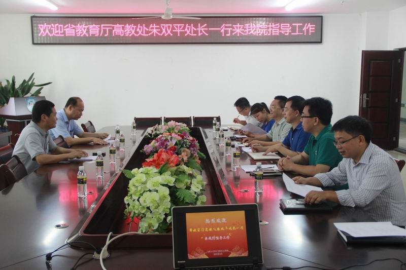 5月13日上午,省教育厅高教处处长朱双平、副处长杨鹏到欧冠官网调研,校长办公室副主任陈卫东、教务处副处长胡先文,欧冠官网院长李德芳、院党委书记段捷频、副院长杨娜和部分教师代表参加调研座谈会。 在调研座谈会上,朱双平处长一行详细了解省委教育工委、教育厅与欧冠官方网站入口共建欧冠官方网站入口相关事宜的落实情况,并就欧冠官方网站入口如何进一步提升思想政治教育课的实效性,以及进一步发挥好在全省高校中的示范作用提出了指导意见。会后,朱双平处长一行还实地查看了欧冠官网网络实验室等条件建设情况。
