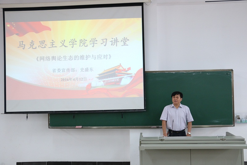 4月12日下午,省委宣传部、省互联网信息办公室网络新闻管理处处长、省互联网与信息化安全专家史盛东应邀为欧冠官网研究生和本科生作题为“网络舆论生态的维护与应对”的专题报告。省委宣传部理论处副处长杨志斌,欧冠官方网站入口宣传部王群生,欧冠官方网站入口党委书记段捷频及部分老师旁听报告。报告会由李辽宁副院长主持。