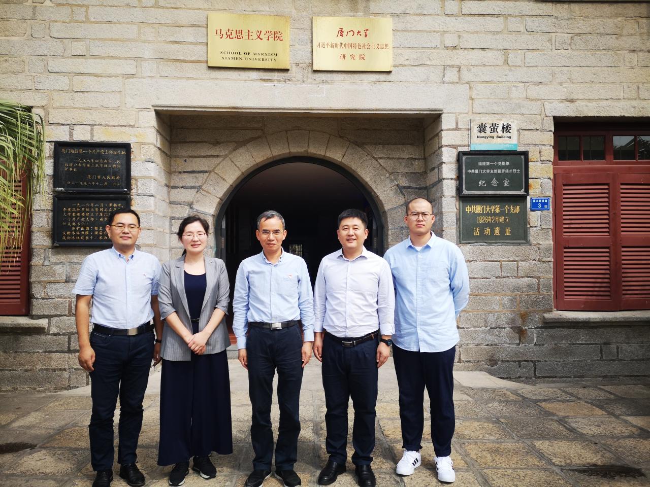11月1-4日,院党委副书记张井富、思想道德修养与法律基础教研部党支部书记蒋玉、研究生党支部副书记原广一行到厦门大学欧冠官方网站入口学习交流。厦门大学欧冠官方网站入口党委书记侯利标介绍了学院党委基本情况,特别是学院实施“四项工程”,创建“全国党建工作标杆院系”的做法及探索。在福建师范大学欧冠官方网站入口,党委书记张爱民、组织委员陈玉玲等人参加座谈交流会,张爱民书记带领大家实地考察了学院理论学科群展览馆,并详细介绍了学院党建工作的特色项目。