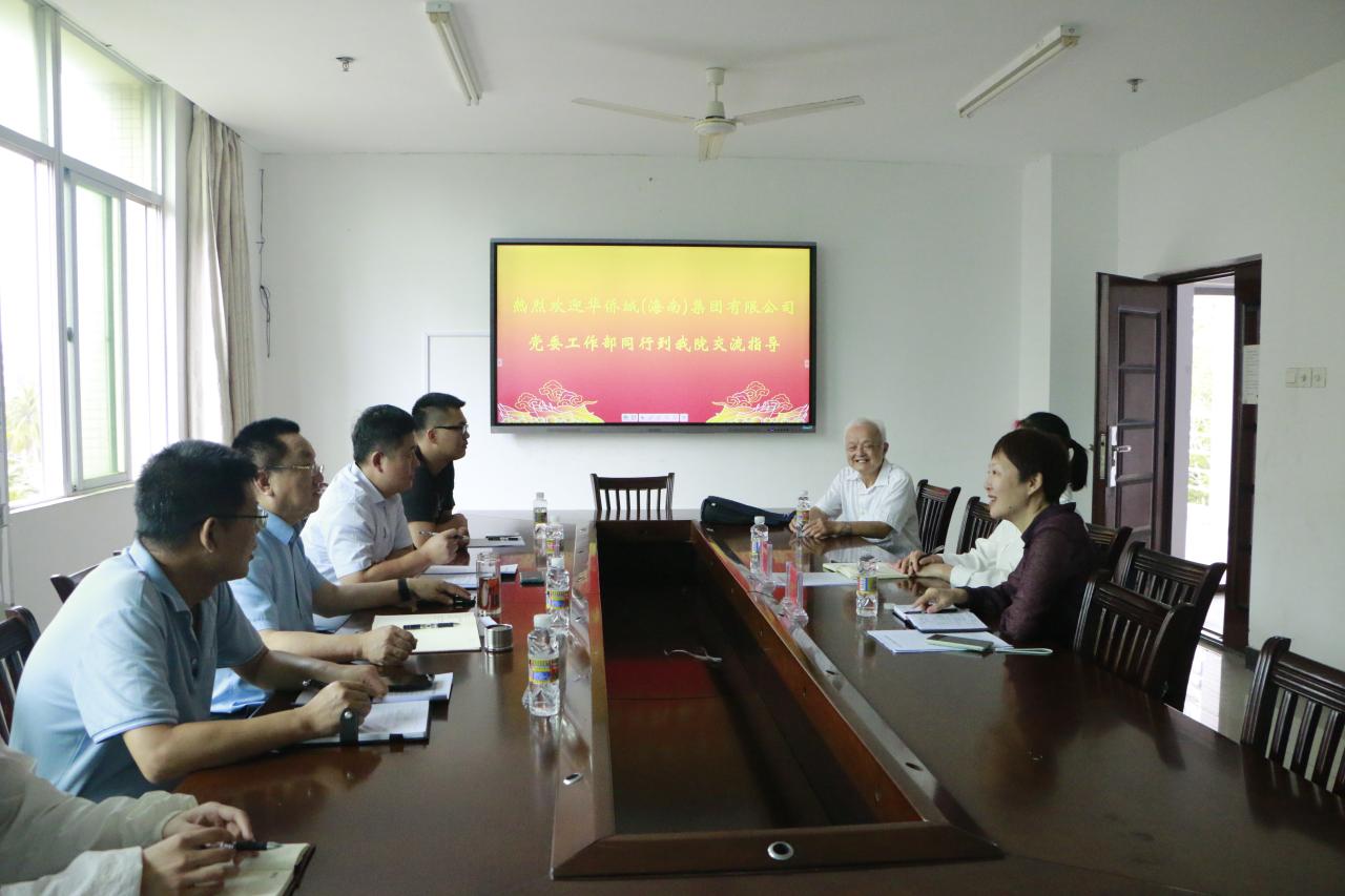 段捷频对王朝晖一行表示欢迎,并介绍了海大马院党建基本情况、主要经验和成效。他指出,学院党建与学院中心工作深度融合,在促进学院跨越式发展过程中发挥了积极作用,并详细介绍了欧冠官方网站入口在多年实践基础上总结提炼的党建引领促进发展“12345示范工程”。他强调,海大马院是海南省学习研究宣传马克思主义的理论重地、海南省首批重点欧冠官方网站入口、海南省首批的标杆党委,华侨城(海南)集团有限公司是中央企业建设海南自贸港的文旅综合体,通过合作共建,发挥协同优势,深化学院与企业之间的合作、打造校企合作平台,有利于不断提高双方党建科学化水平。