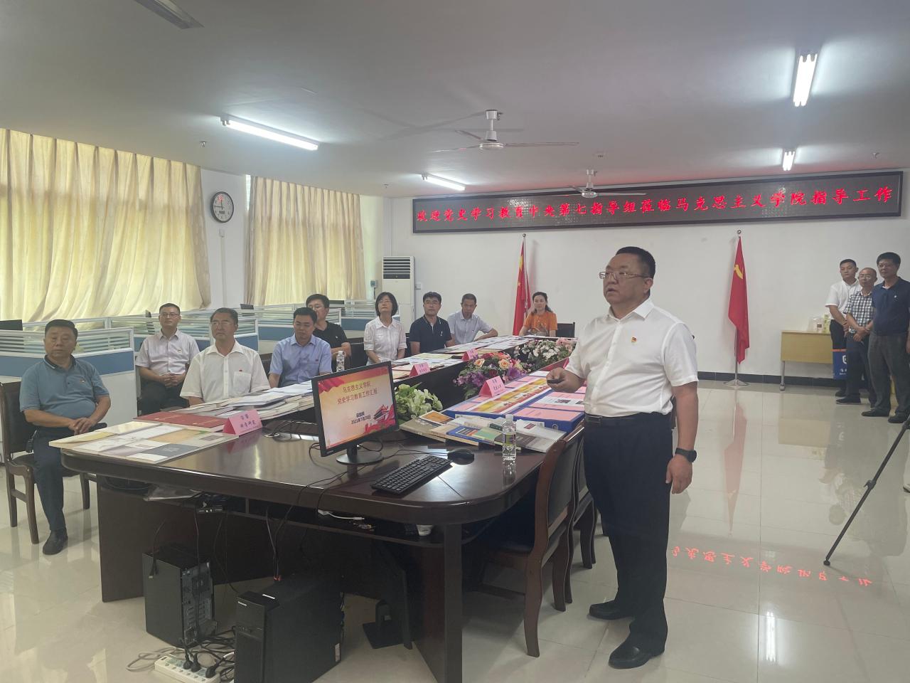 段捷频代表学院党委汇报党史学习教育相关工作。他围绕“突出特色统筹推进党史学习教育,高标准高质量促进学院事业发展”这一主题,汇报了学院党史学习教育的一项工程、三个特色。一项工程,就是通过实施党史学习教育“12345”工程,形成党建工作与中心工作深度融合,促进了学院事业高质量快速发展,取得了阶段性成效;“三个特色”,一是学院组织8位优秀教师、历时7个月打造了欧冠官方网站入口庆祝中国共产党成立100周年“三个100”精品项目;二是学院与海南广播电视总台合作推出了《了不起的共产党》专题栏目;三是学院师生共同开展党史学习教育宣讲。