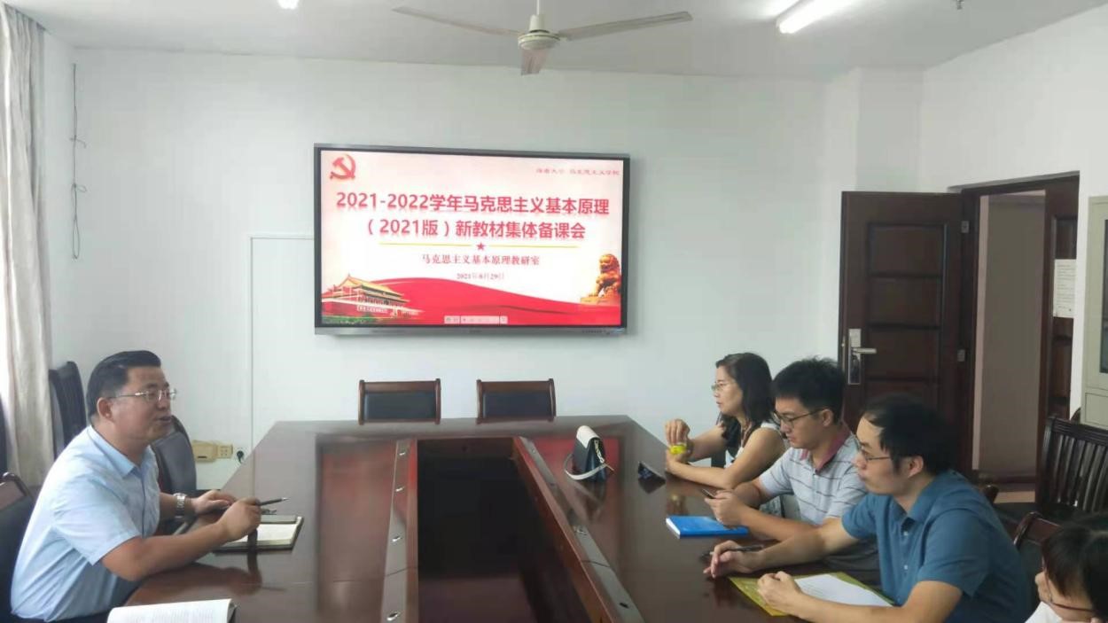 在新学期开学之际,原理教研室根据年度工作计划,持续推进集体备课活动。根据本学期原理课的教学实际,深入开展习近平新时代中国特色社会主义思想的“三进”活动,并将“四史”学习有效融合于《马克思主义基本原理概论》教学当中,全面把握2021版修订的新教材,推进青年教师培养,积极规划和精心组织本次集体备课教研活动。