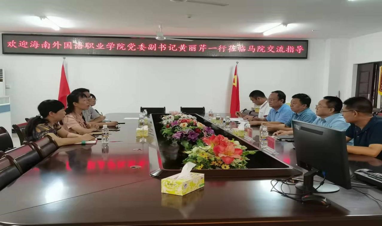 9月14日上午,海南外国语职业学院党委副书记黄丽芹一行到欧冠官方网站入口交流指导工作。欧冠官方网站入口党委书记段捷频、院长张云阁、副院长王善、副处级辅导员张君成和教师代表参加交流会。