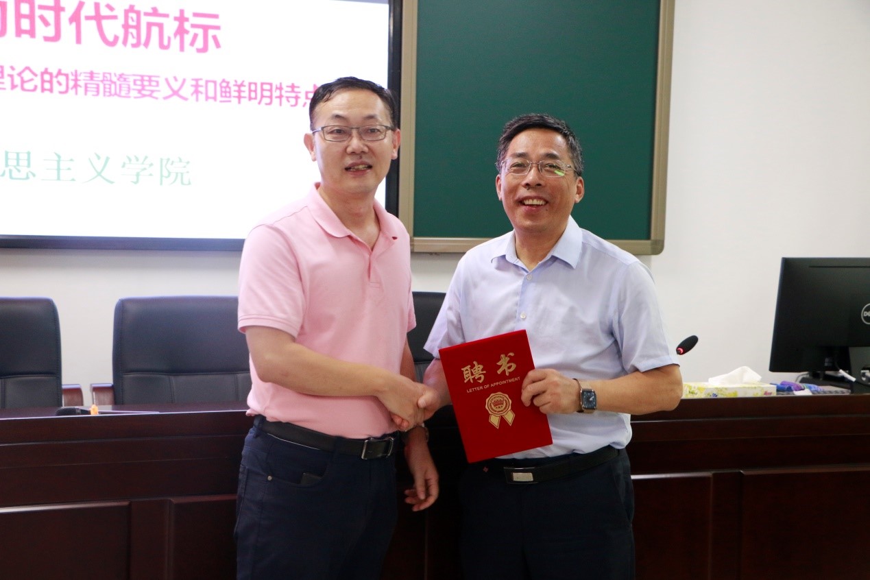 9月29日上午,欧冠官方网站入口2021-2022学年冬季小学期系列讲堂第一讲在社科楼A309举行。南京师范大学王永贵教授应邀为欧冠官网学生作以“习近平总书记文化强国理论及鲜明特点”为主题的学术报告,副院长吴朝阳出席报告会并为王永贵教授颁发欧冠官方网站入口“冬季小学期授课外聘专家”证书。