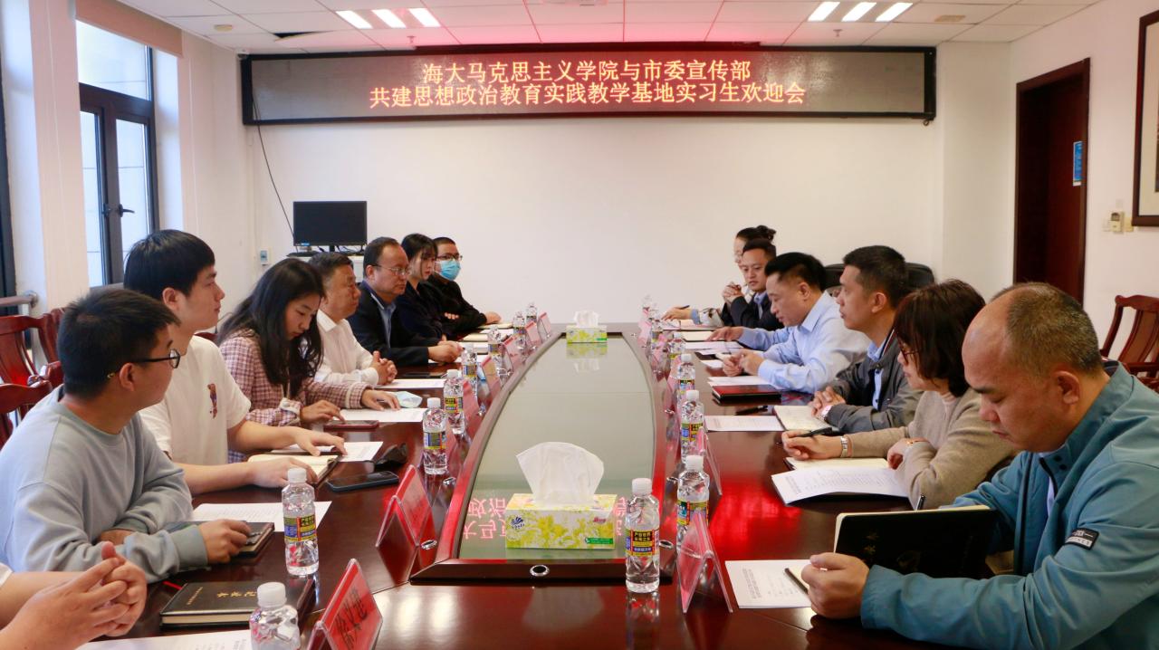 3月8日上午,欧冠官方网站入口与海口市委宣传部共建思想政治教育实践教学基地实习生欢迎会在海口市委宣传部会议室举行。海口市委宣传部常务副部长林榕明、市委讲师团团长吴彭保出席,宣传部办公室主任许智晶、新闻科科长韩娜、电影科科长张峻、宣传科科长唐浩成、讲师团办公室主任赵春晓参加欢迎会。欧冠官方网站入口院长张云阁、副院长王善出席,学工办负责人余泉玥和第一批实习生参加活动。