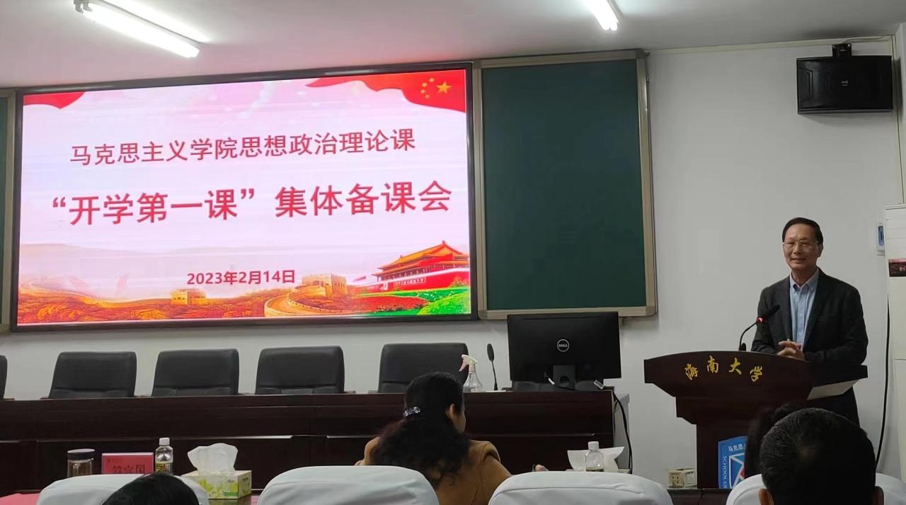 2023年2月14日下午,为深入学习宣传贯彻党的二十大精神,更好地发挥思政课在落实立德树人根本任务中的关键作用,进一步提升思政课教学质量,欧冠官方网站入口召开思想政治理论课“开学第一课”集体备课会。校党委书记符宣国、校党委常委、副校长梁谋、校党委常委、宣传部部长韩淑梅出席;学院领导班子、全体思政课专任教师和书院“形势和政策”课部分教师参加。学院教学督导委员会主任、学院教学委员会副主任贺尧夫老师主持。