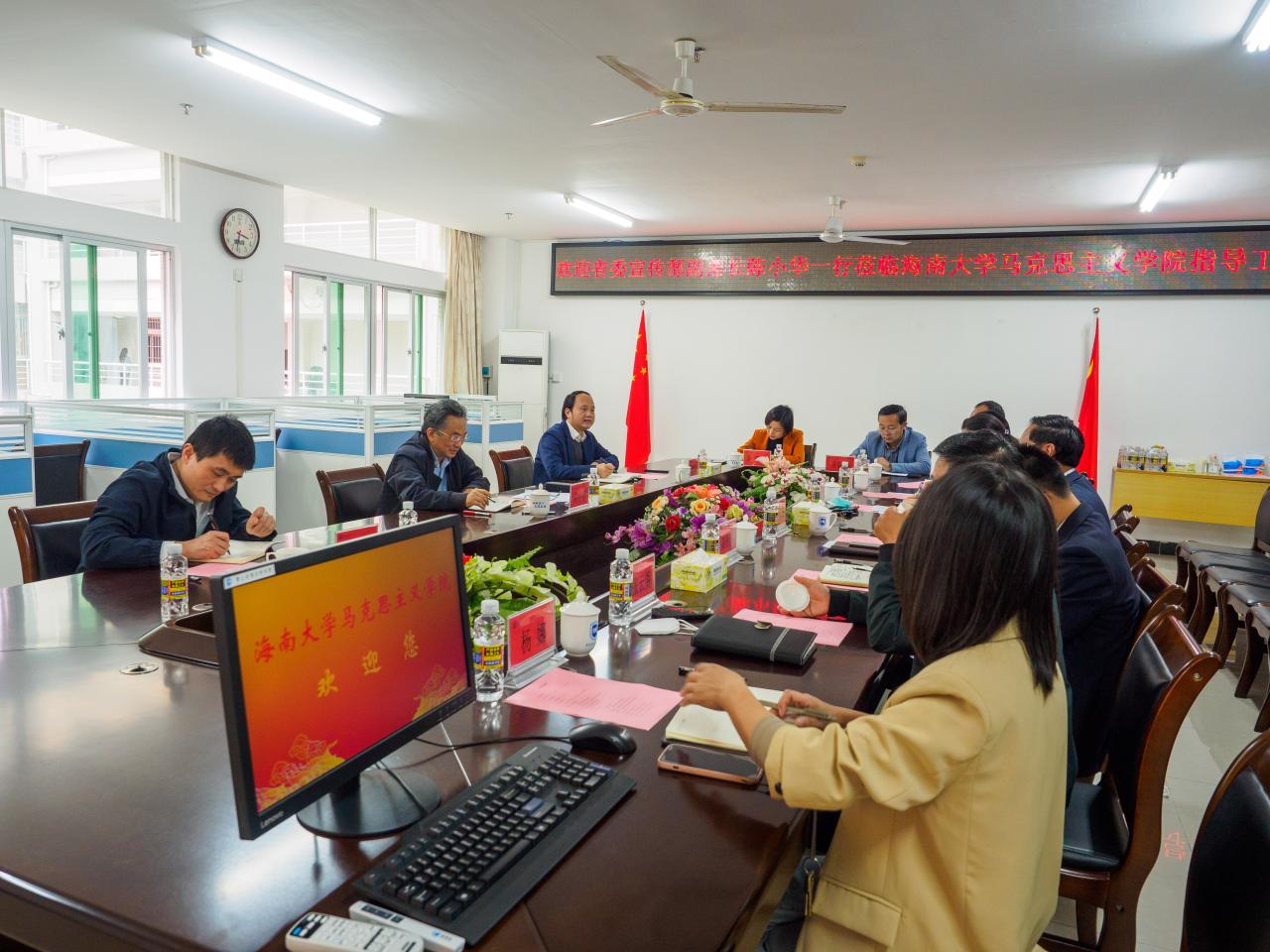 2月20日下午,海南省委宣传部副部长陈小华一行到欧冠官方网站入口调研。欧冠官方网站入口党委书记符宣国,党委常委、副校长高佃恭,党委常委、宣传部部长韩淑梅出席,欧冠官方网站入口领导班子成员参加会议。会议由符宣国书记主持。