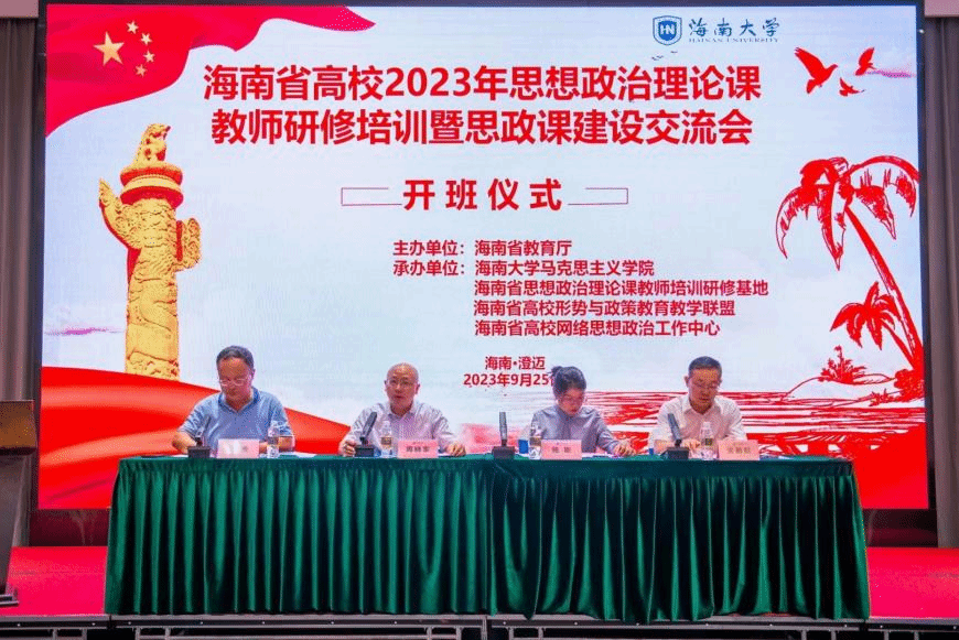 9月25日上午,海南省高校2023思想政治理论课教师研修培训开班仪式顺利举行,海南省教育厅党委办公室主任周晓东、欧冠官方网站入口副院长(主持工作)杨娜、欧冠官方网站入口副院长王善、吴朝阳等出席开班仪式。