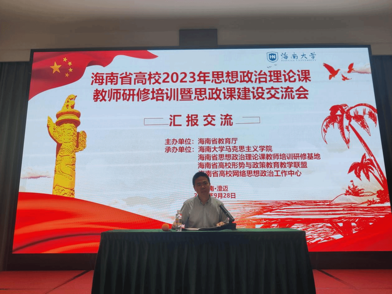 为深入贯彻落实党的二十大精神,提升我省高校思想政治理论课教师队伍建设水平,2023年9月25日至9月28日,海南省高校2023思想政治理论课教师研修培训暨思政课建设交流会在海南省澄迈县举行。本次研修班由海南省教育厅主办,欧冠官方网站入口、海南省思想政治理论课教师培训研究基地、海南省高校形势与政策教育教学联盟和海南省高校网络思想政治工作中心承办,来自海南省内22所高校95位思政课教师参会。