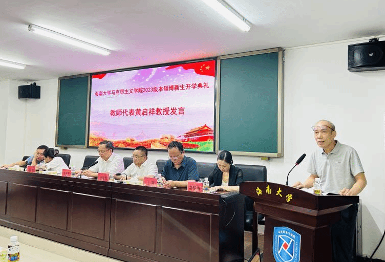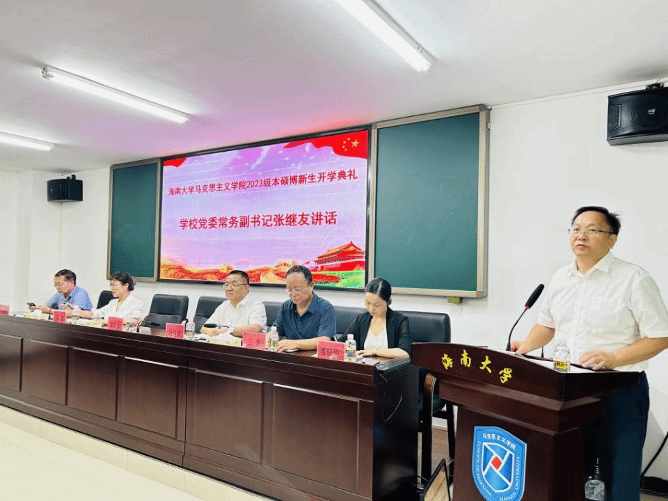 张继友在开学典礼上发表热情洋溢的讲话,他代表学校党委和全体海大师生对欧冠官方网站入口2023级新同学表示祝贺和欢迎,并为全体新同学上了一堂生动的“开学第一课”。他从马克思和燕妮“为全人类而工作”的传奇爱情故事、习近平总书记七年知青岁月的动人成长故事以及自己学习和实践马克思主义的故事导入,勉励马院学子要努力学习、刻苦钻研,真正掌握马克思主义看家本领,自觉担当起强国建设、民族复兴的历史责任。