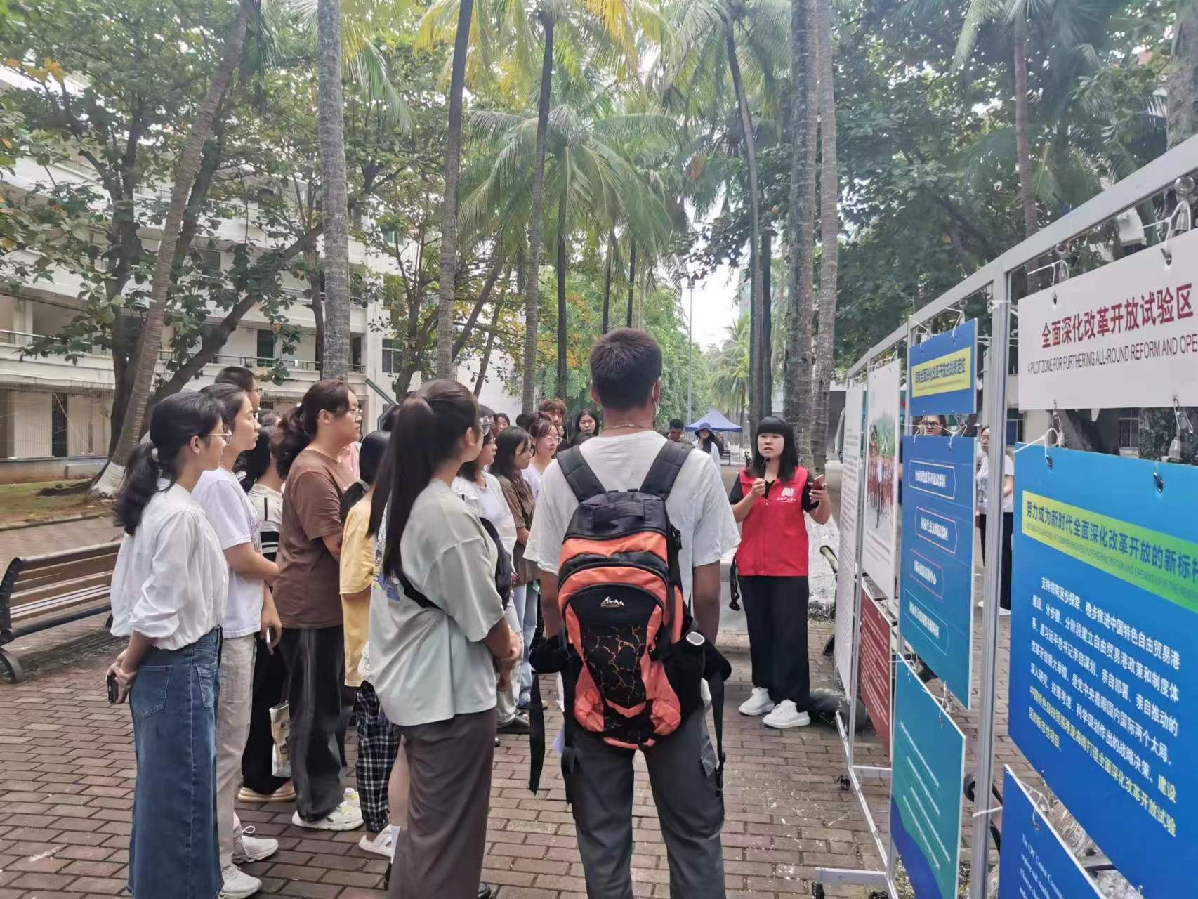 近期,为深入开展学习贯彻习近平新时代中国特色社会主义思想,进一步推进“大思政课”建设,在中共海南省委宣传部等指导下,在龙借琼等老师和学院思政本科生10多名志愿者的积极组织和参与下,欧冠官网与省史志馆合办的为期一周的“海南全面深化改革开放和中国特色自由贸易港建设成果展”巡展活动圆满结束。活动得到了省史志馆高度肯定和学校广大师生的一致好评,取得了良好的成效和影响。