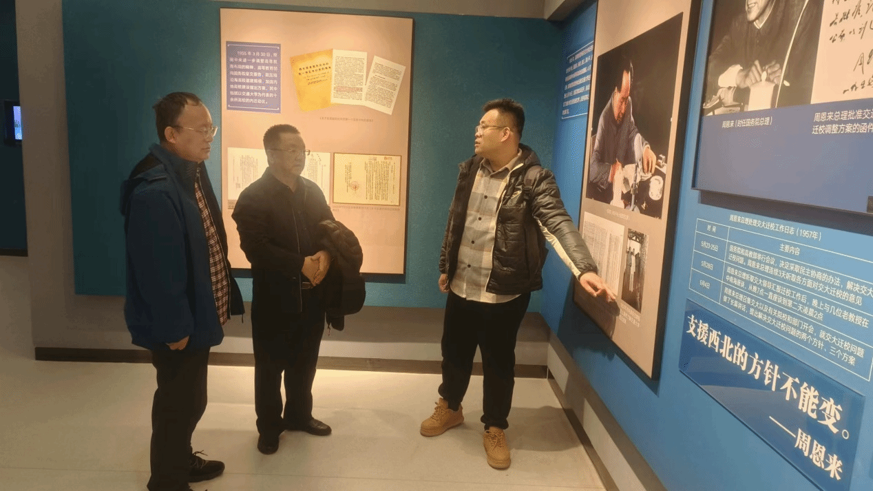调研组与西安交通大学欧冠官方网站入口同行举行座谈,西安交通大学欧冠官方网站入口党委书记苏玉波主持座谈会并就党建工作进行介绍,院长燕连福从历史沿革、学科建设、服务地方等方面介绍了西安交通大学欧冠官方网站入口的办学情况,并重点介绍了“西迁精神”融入思想政治理论课的相关经验,副院长陈建兵、梁军,欧冠官网校友、西安交通大学欧冠官方网站入口高飞老师出席座谈会并带领调研组参观了交大西迁博物馆。