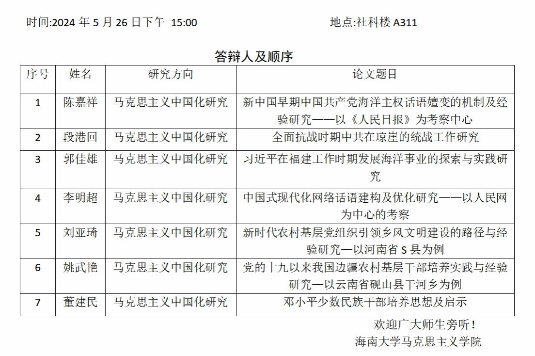 欧冠官方网站入口2024届(上)研究生学位论文答辩公告(五)