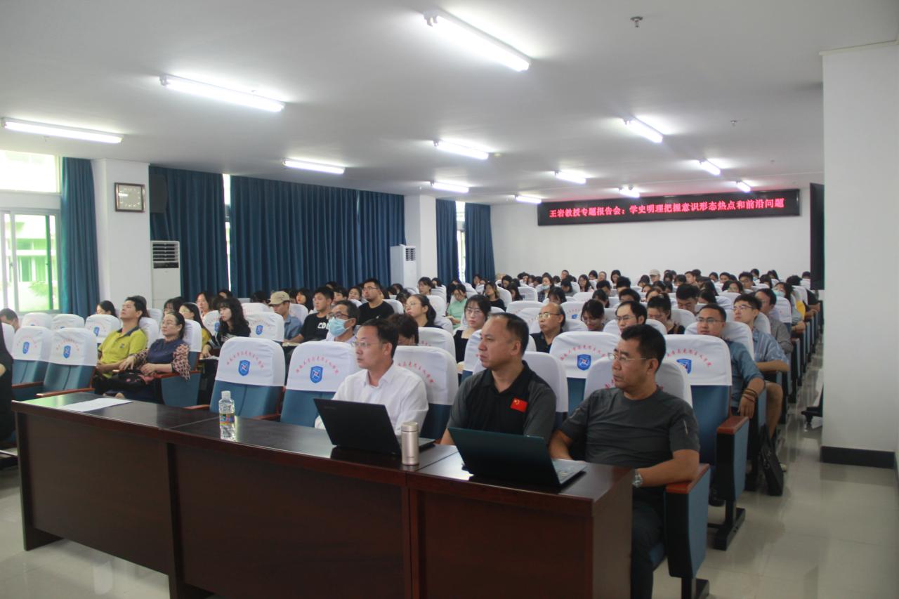 10月29日,南京航空大学欧冠官方网站入口王岩教授到欧冠官方网站入口指导交流,在社科楼A309为学院师生作题为“学史明理 把握意识形态热点和前沿问题” 的专题报告。院领导班子全体成员、没课的教师和全体研究生参加报告会。报告会由院长张云阁主持。